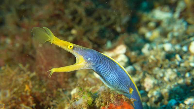 Diving in Indonesia, especially the Lembeh Strait, offers extraordinary experiences. The special thing about muck diving, diving in mud and sand, is the often very bizarre-looking marine life.
